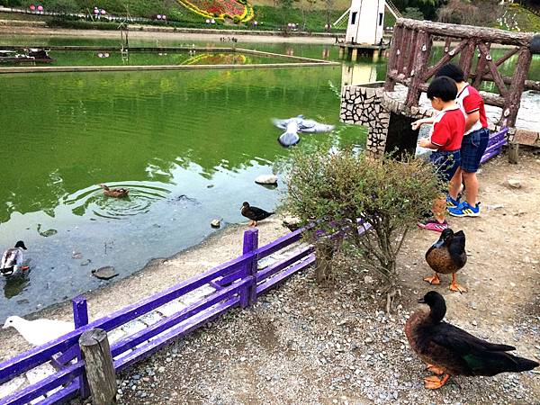 他主要有個環湖步道,中間是湖,裡面有鴨鴨,有飼料機可以買飼料餵他們