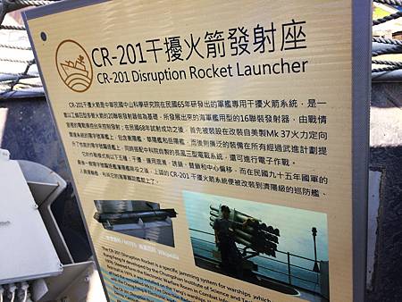 軍艦上展覽了砲台、深水炸彈施放軌、直升機升降甲板、MK32反潛魚雷發射管、核生化管、干擾火箭發射器…等裝置設備