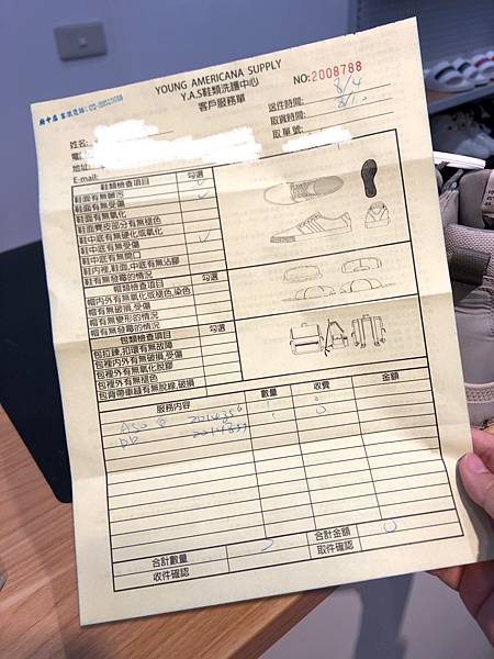 上面記錄了鞋鞋狀況及取貨時間、收取費用等等