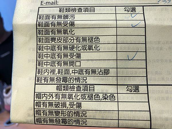 填寫完髒污、破損之後,會給鞋鞋一個標籤