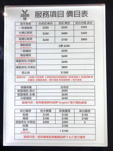 這邊都有服務項目跟價目表,一目了然,給大家參考一下!