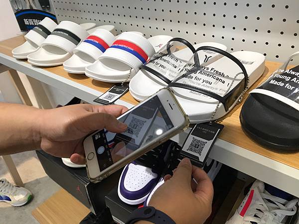 像是拖鞋、布鞋,上面都有QRCODE可以掃描唷!