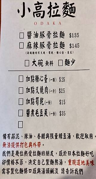 現在小高拉麵也開放外帶啦,